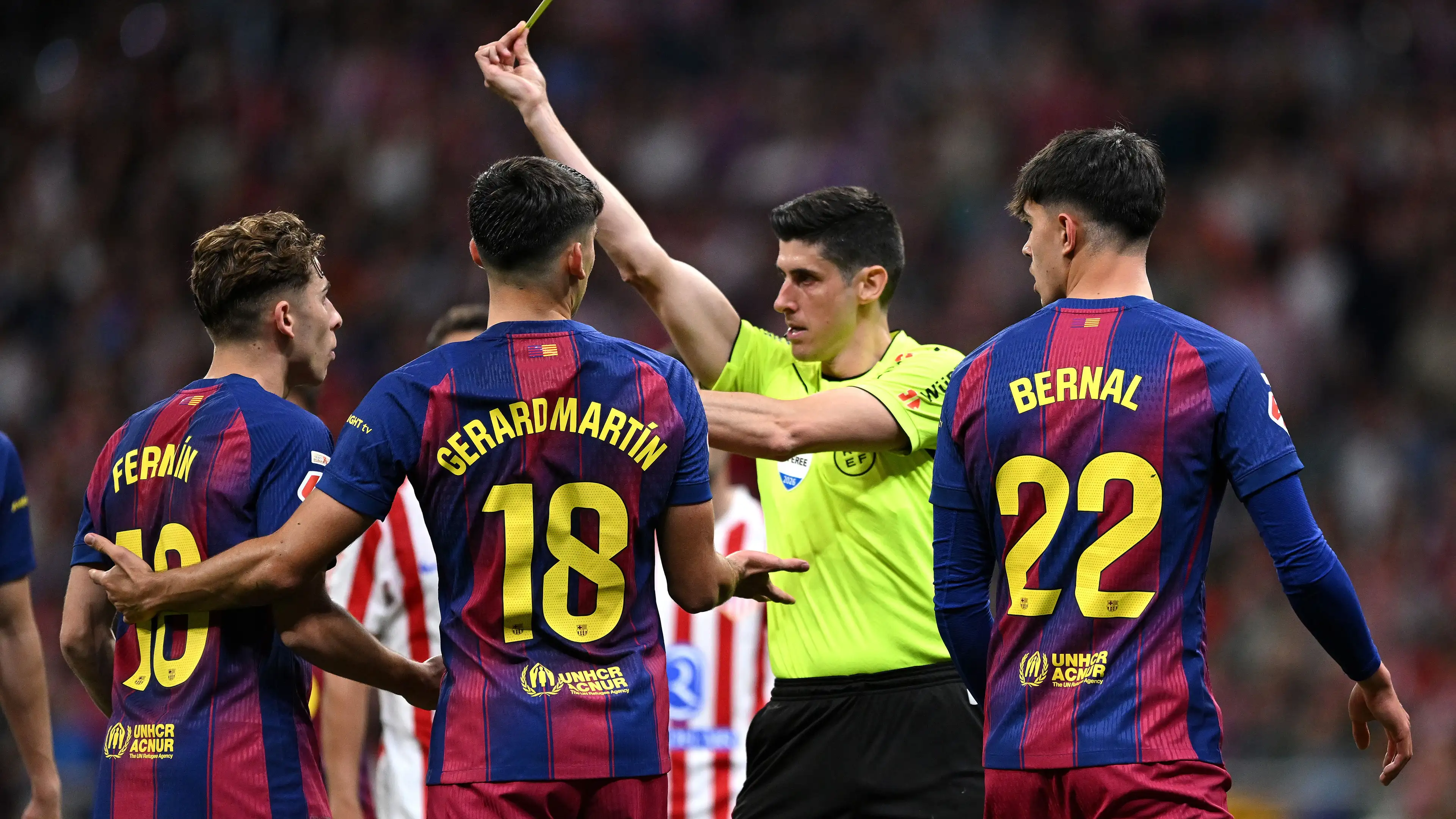 Energised by the quick equaliser, Barça received another boost just before half-time when Atlético's Nicolás González was sent off for a late foul on Yamal.